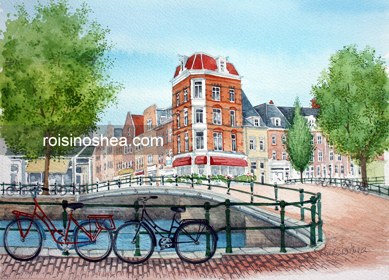 Painted by the artist in 2014 following a visit to the City of Amsterdam. Painting Size: 9 x 12 inches, mounted (matted) size 13 x 16 inches