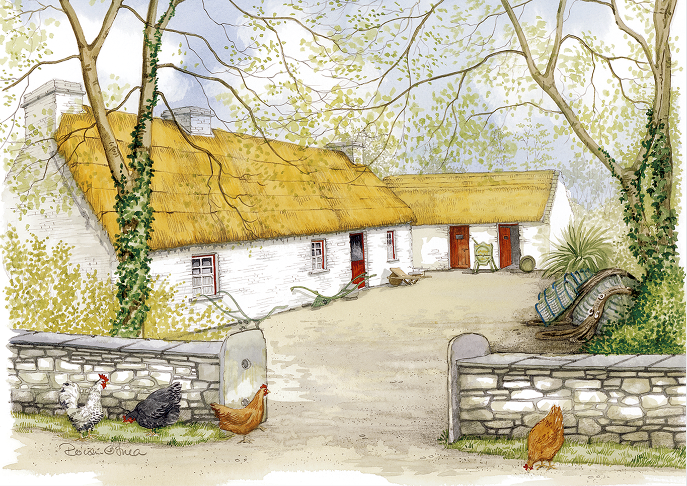Traditional Fisherman’s cottage recreated in Bunratty Folk park County Clare – painted by the artist in 2002 as part of a Bunratty Folk Park collection.