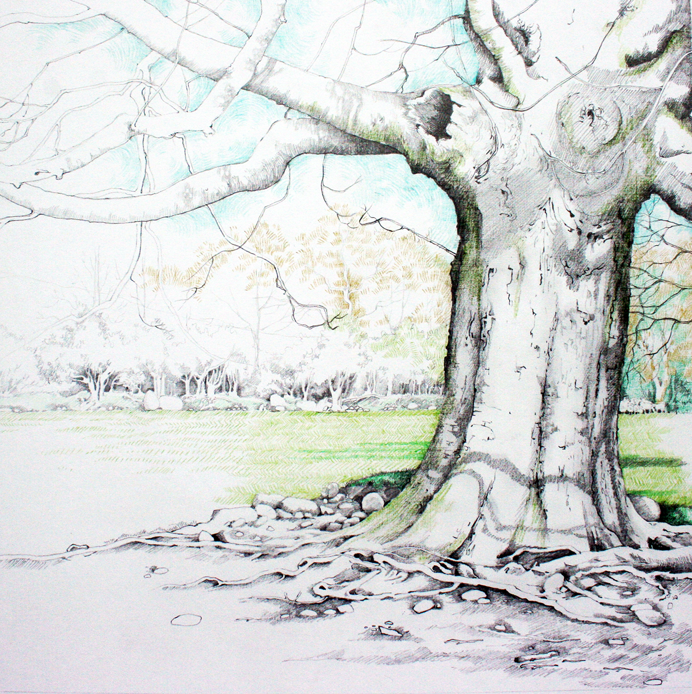 A faithfully reproduced Limited Edition print of a mixed media drawing of a Horse Chestnut tree located on the ancestral farmlands which have been in the artist’s family for almost 200 years in County Waterford. Painted by the artist in 2010.