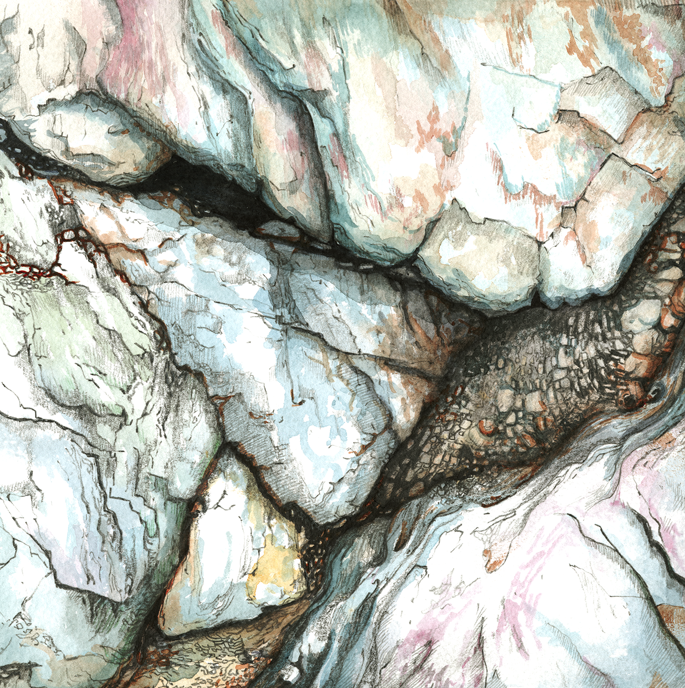 A faithfully reproduced Limited Edition print of an original watercolour painting of a stone wall, painted by the artist in 2010.