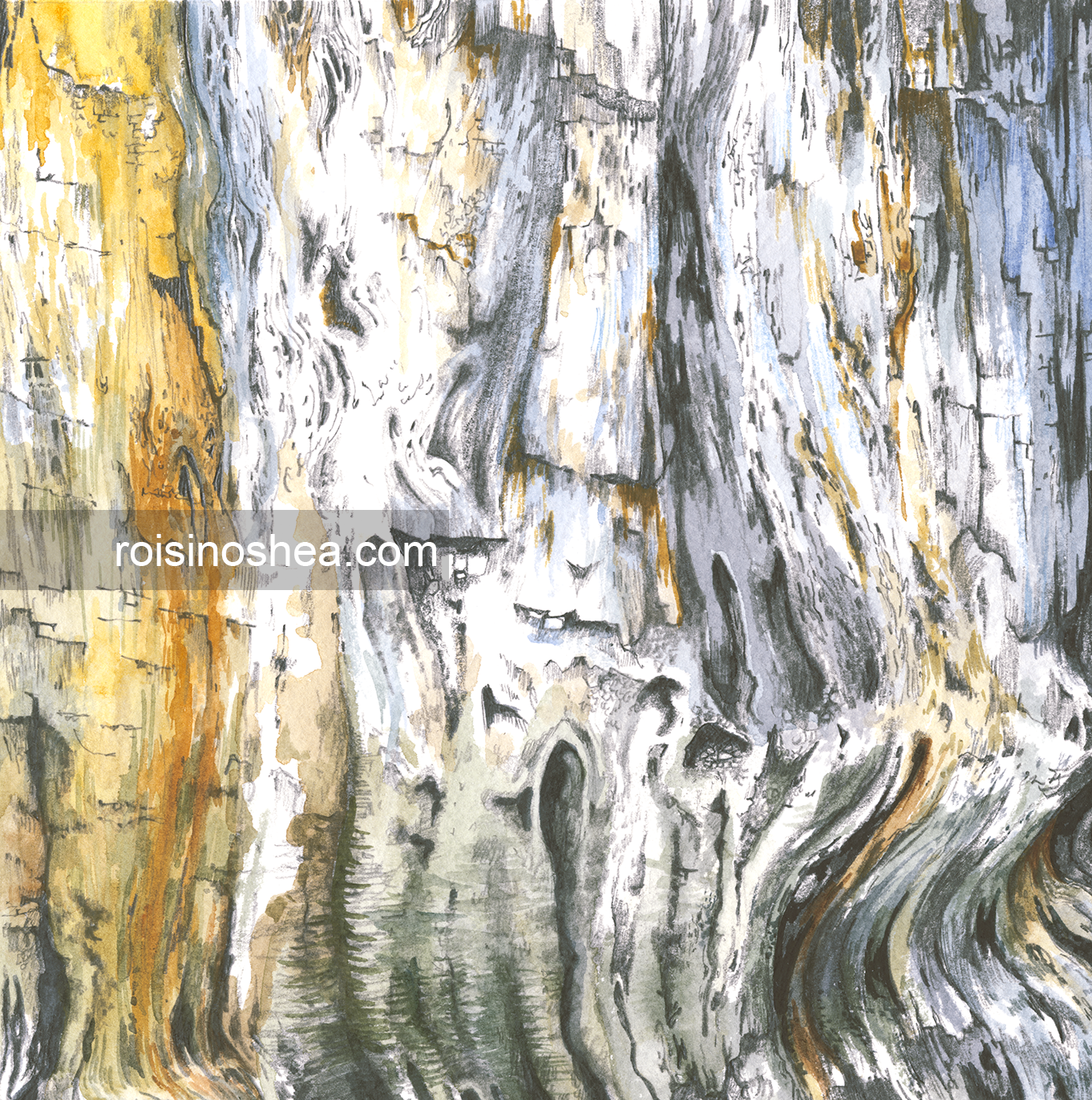 A faithfully reproduced Limited Edition print of an original watercolour painting of a cliff face, painted by the artist in 2010.
