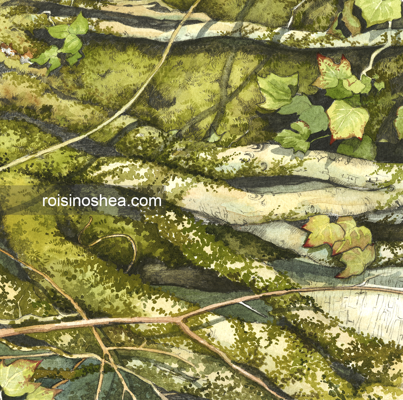 A faithfully reproduced Limited Edition print of an original watercolour painting of ivy vines, painted by the artist in 2010.