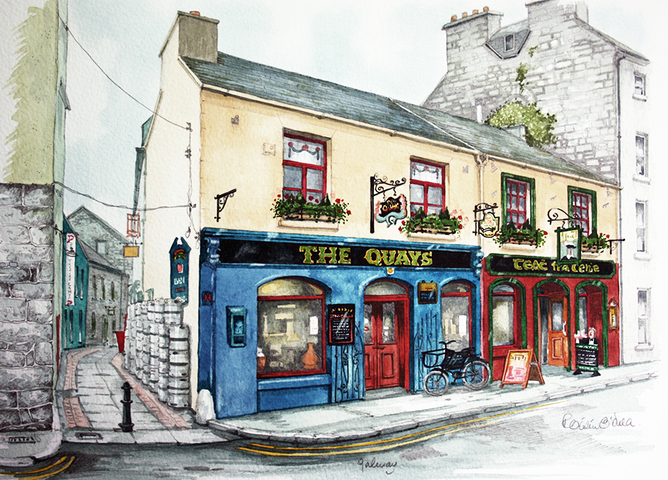 Established almost 400 years ago, this traditional pub is located in the heart of Galway City County Galway – a famous and historic music and drinking establishment – painted by the artist in 1996