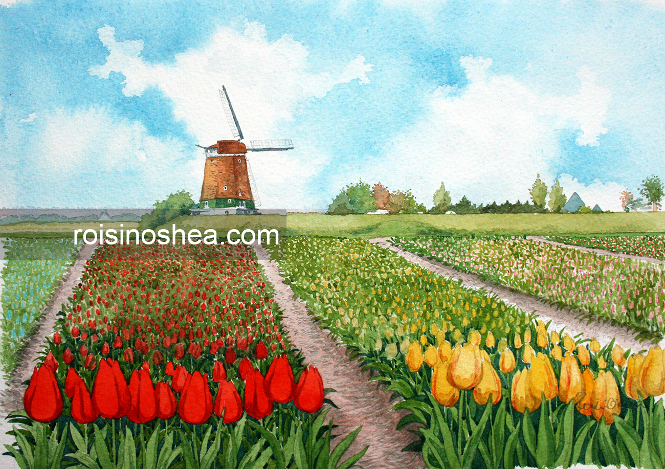 Painted by the artist in 2014 following a visit to the Netherlands.Painting Size 9 x 12 inches, mounted (matted size) 13 x 16 inches